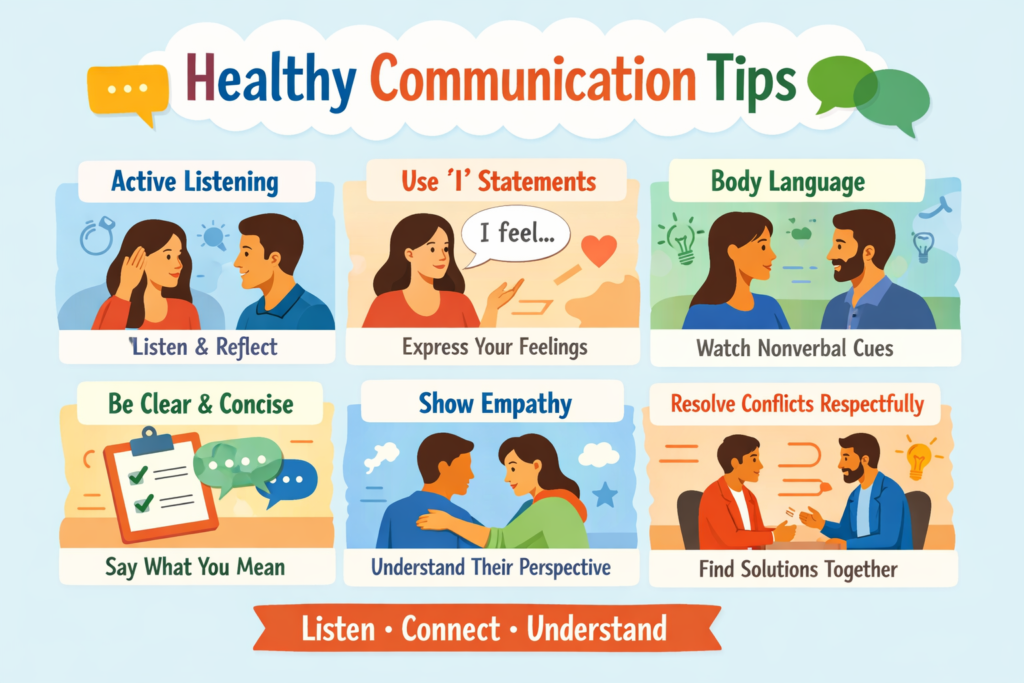 Healthy communication is not innate for most people — it’s a set of skills that can be learned, practiced, and strengthened over time. By listening actively, speaking clearly, expressing feelings thoughtfully, and paying attention to nonverbal signals, individuals can improve understanding, reduce conflict, and build deeper, more satisfying connections. Whether in the workplace, at home, or in social settings, these strategies help create interactions that are respectful, meaningful, and effective.