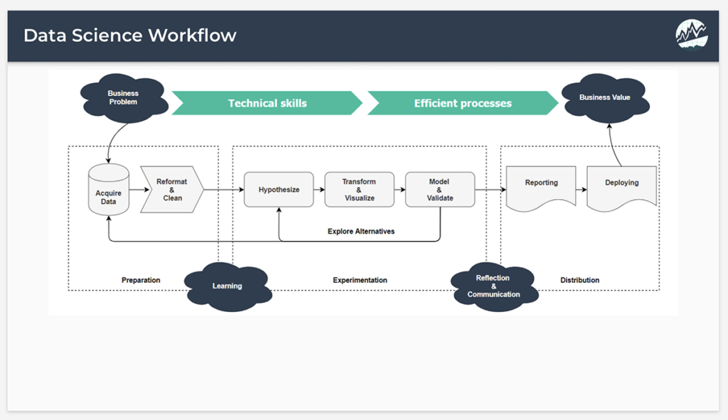 Data science isn’t a single technique or tool—it’s a workflow that includes several key steps: